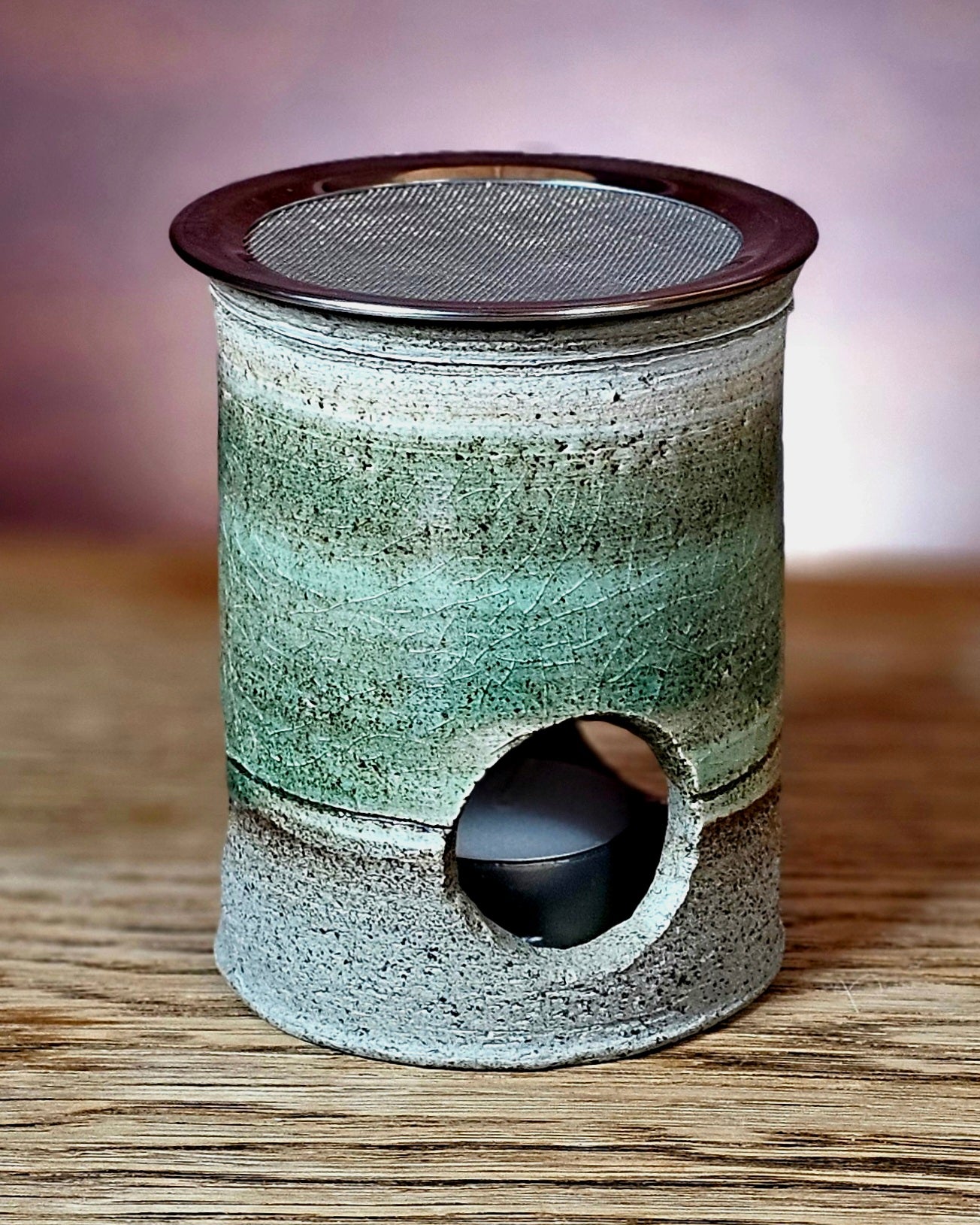 Mit diesem handgefertigten Räucherstövchen kannst du Kräuter und Blüten besonders schonend verräuchern. Anders als bei der Kohleräucherung werden die Pflanzen durch die Wärme der Kerze sanft erwärmt, sodass ihre feinen Aromen sich langsam entfalten und den Raum auf natürliche Weise erfüllen.
